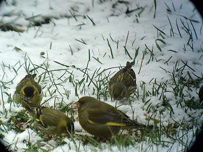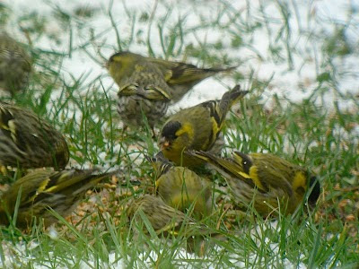 I have gotten to count in 15 minutes, 110 Siskin, 20 Great Tit, 32 Blue Tit, 15 Common Chaffinch , 3 Marsh Tit, 6 Greenfinch, 5 Robin, 4 Blackcap, 1 Blackbird ,1 Nuthatch, 1Dunnock, everything a spectacle.